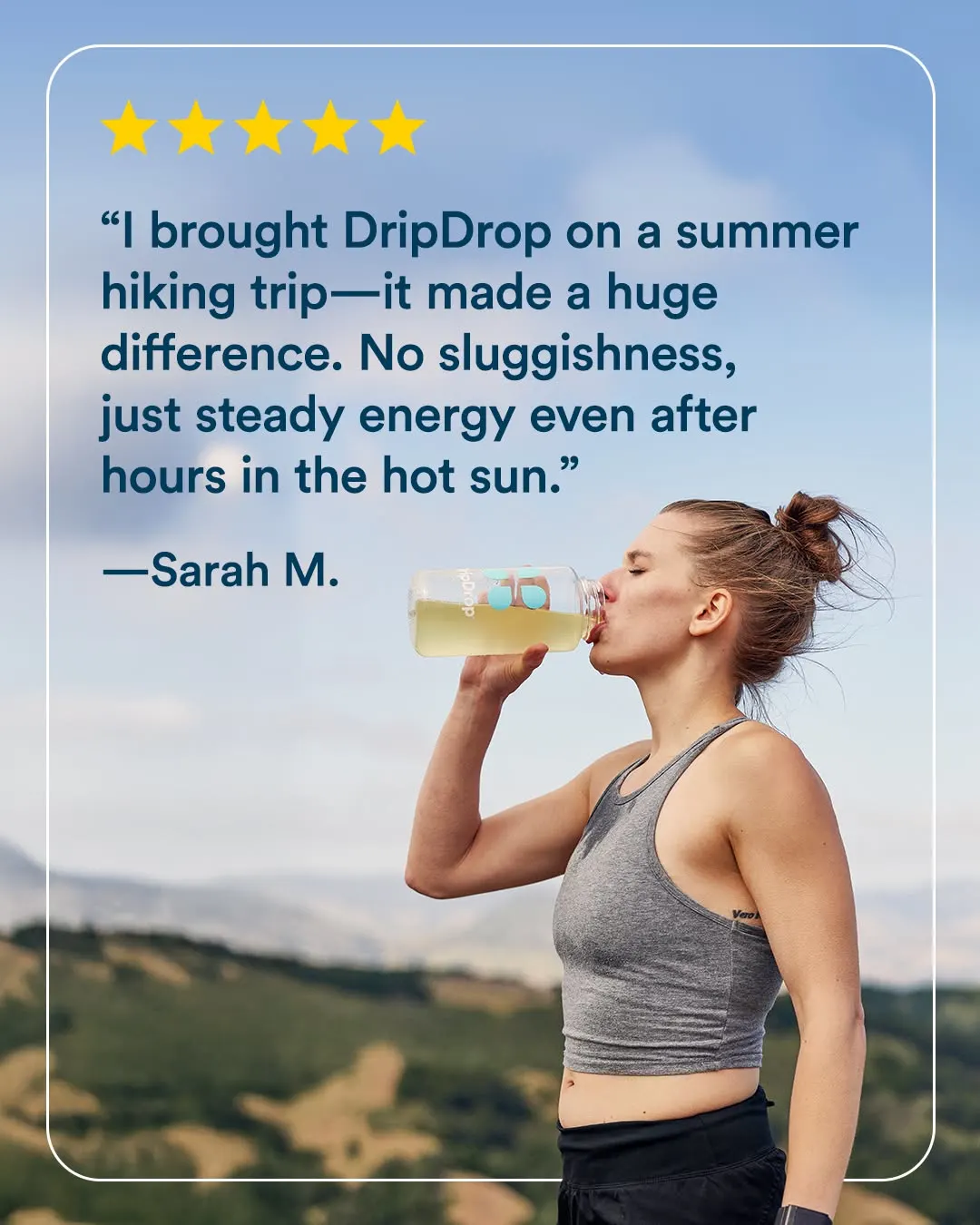 Created by a doctor and trusted by wellness professionals like Megan Roup, DripDrop delivers rapid hydration you can count on — perfect for busy, active days.