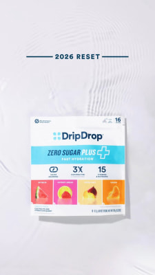 Developed by a doctor, DripDrop delivers 3x electrolytes and essential vitamins like zinc and potassium, rehydrating you faster than water alone—with 1/2 the sugar vs the leading sports drink.
