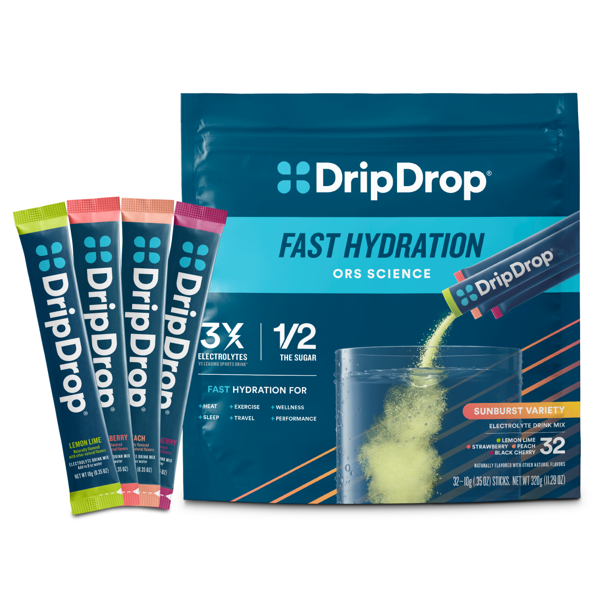 Doctor-developed DripDrop contains the sodium electrolyte levels and lower glucose content required to facilitate fast fluid absorption, AND it tastes great. Packed with essential electrolytes like sodium, potassium, and magnesium, plus zinc and vitamin C for immune support, it's an effective rehydration solution.