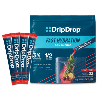 DripDrop Fruit Punch Electrolyte Powder, 8 oz sticks, 32 count