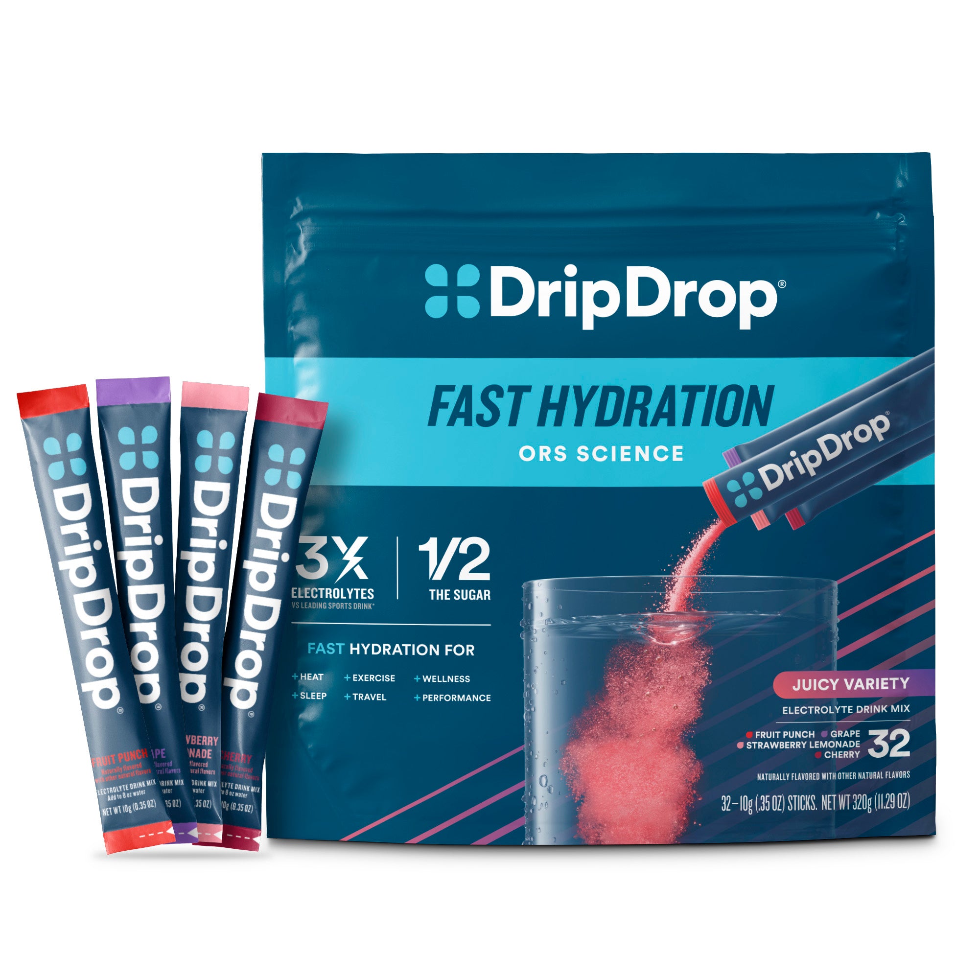 Doctor-developed DripDrop contains the sodium electrolyte levels and lower glucose content required to facilitate fast fluid absorption, AND it tastes great. Packed with essential electrolytes like sodium, potassium, and magnesium, plus zinc and vitamin C for immune support, it's an effective rehydration solution.