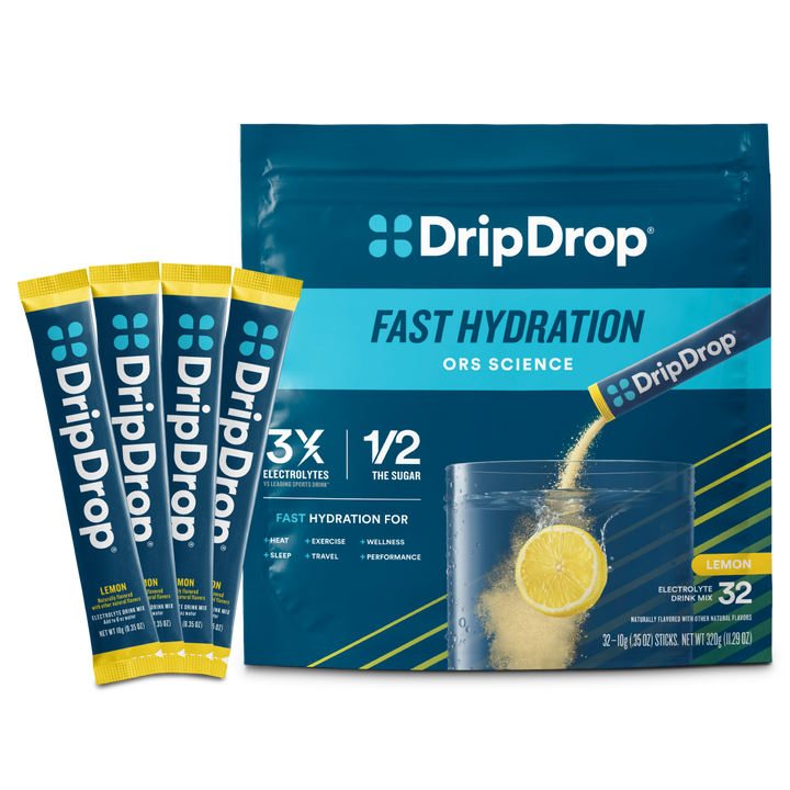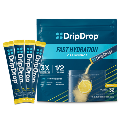 Doctor-developed DripDrop contains the sodium electrolyte levels and lower glucose content required to facilitate fast fluid absorption, AND it tastes great. Packed with essential electrolytes like sodium, potassium, and magnesium, plus zinc and vitamin C for immune support, it's an effective rehydration solution.