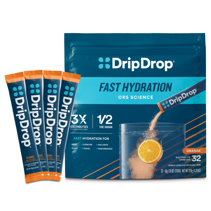 Doctor-developed DripDrop contains the sodium electrolyte levels and lower glucose content required to facilitate fast fluid absorption, AND it tastes great. Packed with essential electrolytes like sodium, potassium, and magnesium, plus zinc and vitamin C for immune support, it's an effective rehydration solution.