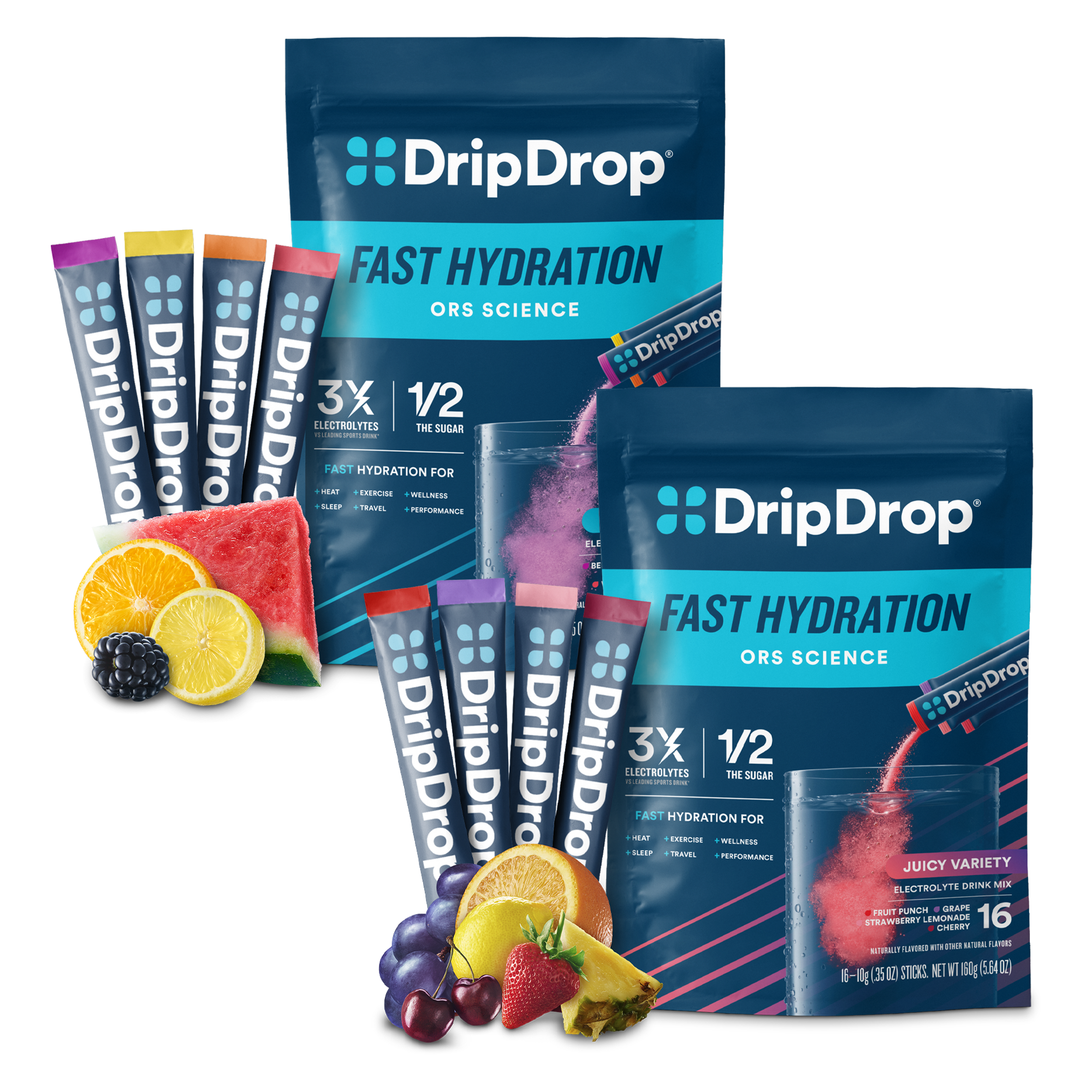 Doctor-developed DripDrop contains the sodium electrolyte levels and lower glucose content required to facilitate fast fluid absorption, AND it tastes great. Packed with essential electrolytes like sodium, potassium, and magnesium, plus zinc and vitamin C for immune support, it's an effective rehydration solution.