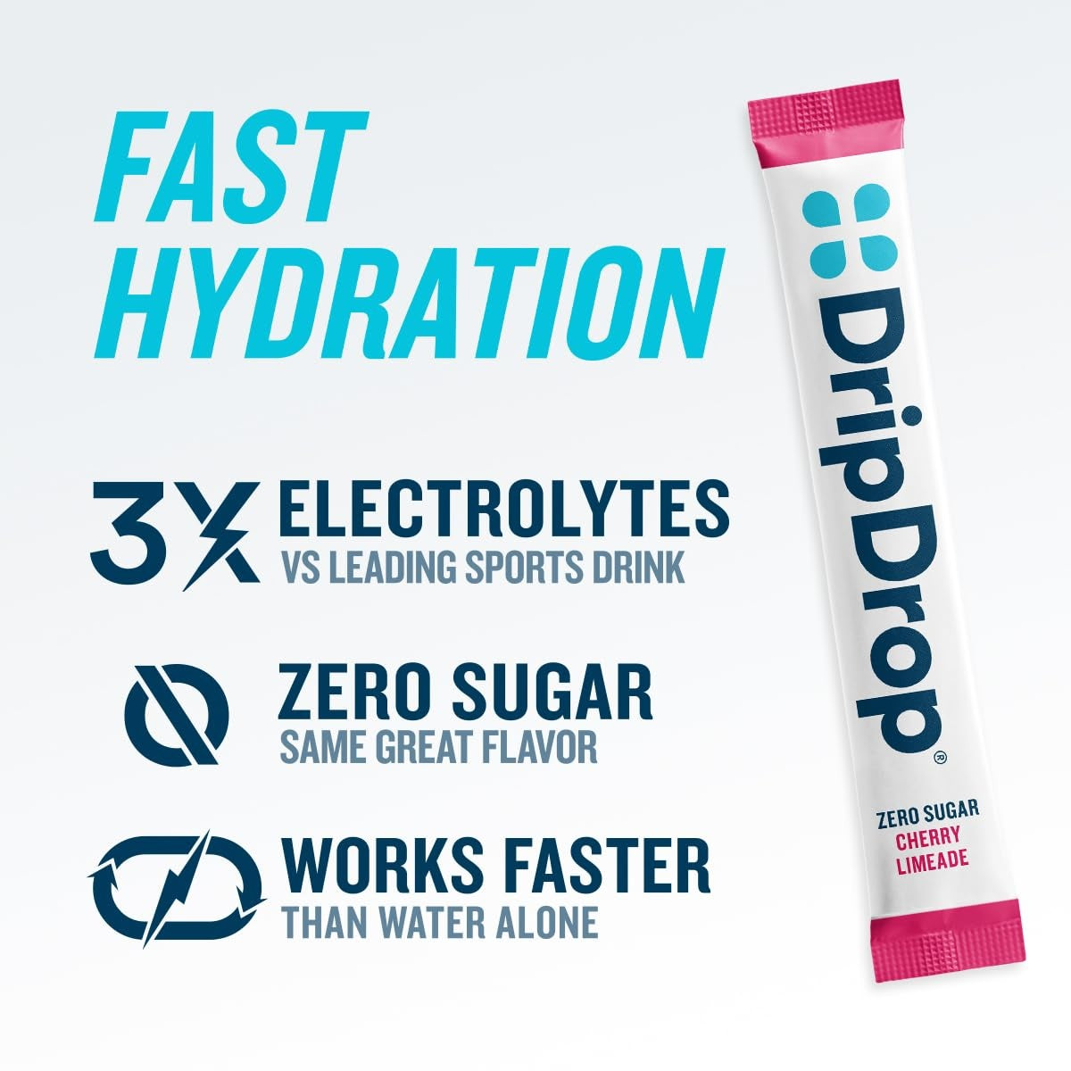 Doctor-developed DripDrop contains the sodium electrolyte levels and lower glucose content required to facilitate fast fluid absorption, AND it tastes great. Packed with essential electrolytes like sodium, potassium, and magnesium, plus zinc and vitamin C for immune support, it's an effective rehydration solution.