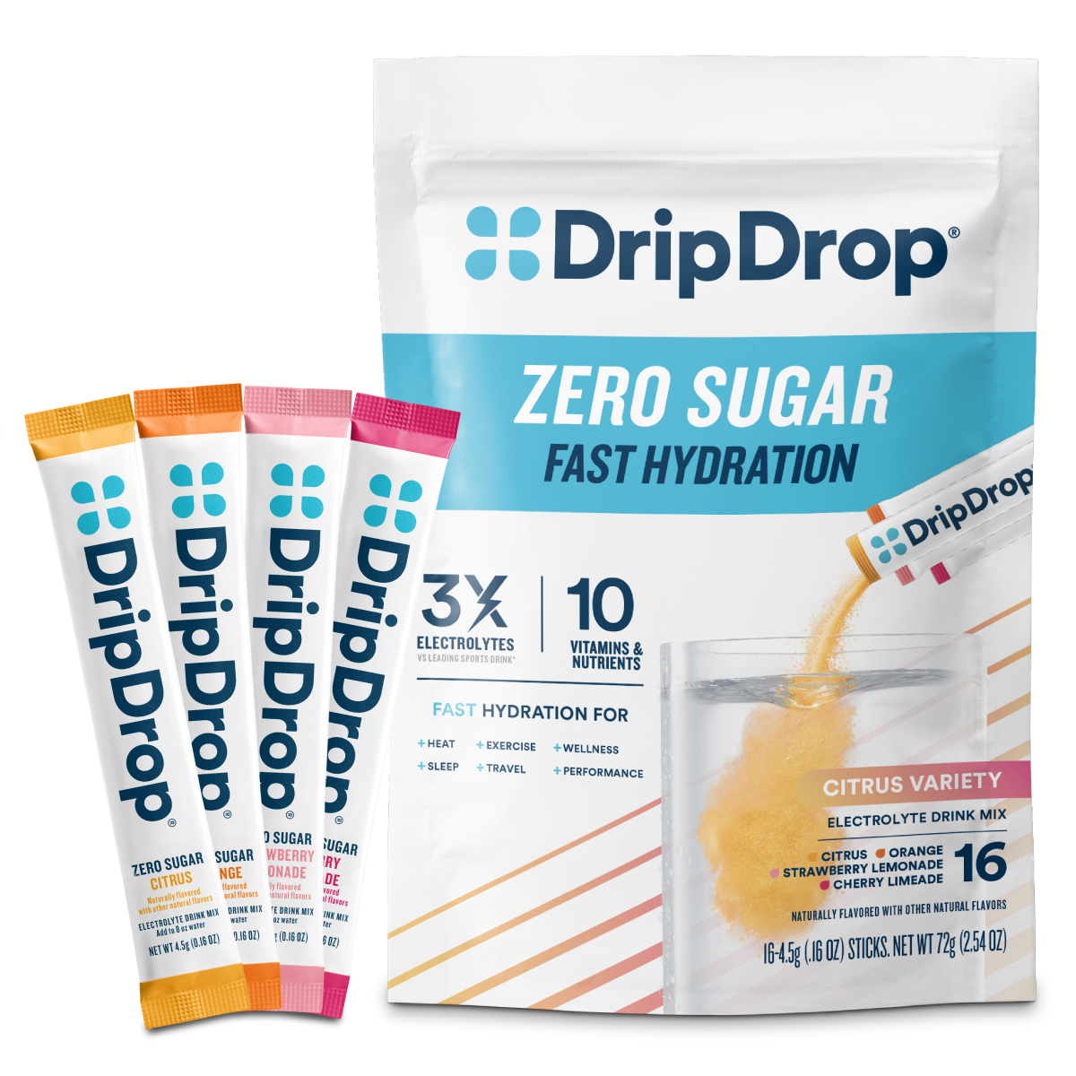 Doctor-developed DripDrop contains the sodium electrolyte levels and lower glucose content required to facilitate fast fluid absorption, AND it tastes great. Packed with essential electrolytes like sodium, potassium, and magnesium, plus zinc and vitamin C for immune support, it's an effective rehydration solution.