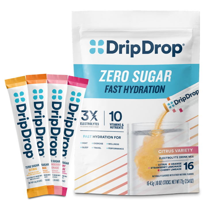Doctor-developed DripDrop contains the sodium electrolyte levels and lower glucose content required to facilitate fast fluid absorption, AND it tastes great. Packed with essential electrolytes like sodium, potassium, and magnesium, plus zinc and vitamin C for immune support, it's an effective rehydration solution.