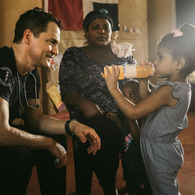 Our founder, Dr. Dolhun, invented DripDrop while on a mission trip to defeat life-threatening dehydration. We remain steadfast in our commitment to supporting communities not only through product donations, but with boots on the ground.