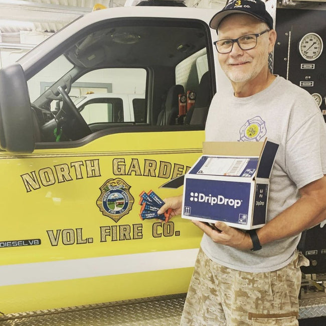 To help support volunteer fire departments across the US, DripDrop proudly partnered with the National Volunteer Fire Council for the 5th consecutive year in a row! This year, DripDrop donated 400,000 servings to 1,000 volunteer fire departments around the country. We are privileged to have our product trusted by firefighters around the country and are pleased to be able to fuel these heroes in their efforts to keep communities safe.