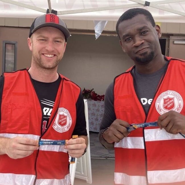 DripDrop’s partners Global Empowerment Mission and The Salvation Army responded immediately with boots-on-the-ground support. GEM supplied BStrong Family Necessity Kits and emergency supplies, and The Salvation Army provided supplies and meals to those affected and the First Responders. DripDrop is proud to partner with both organizations to supply dehydration relief for their emergency response services.